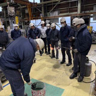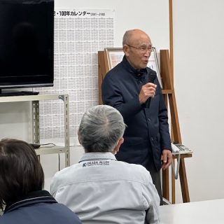 また、相談役の石丸より金型鋳造の歴史を振り返りながら、時代の変化の中で挑戦を続けてきた経験や想いに